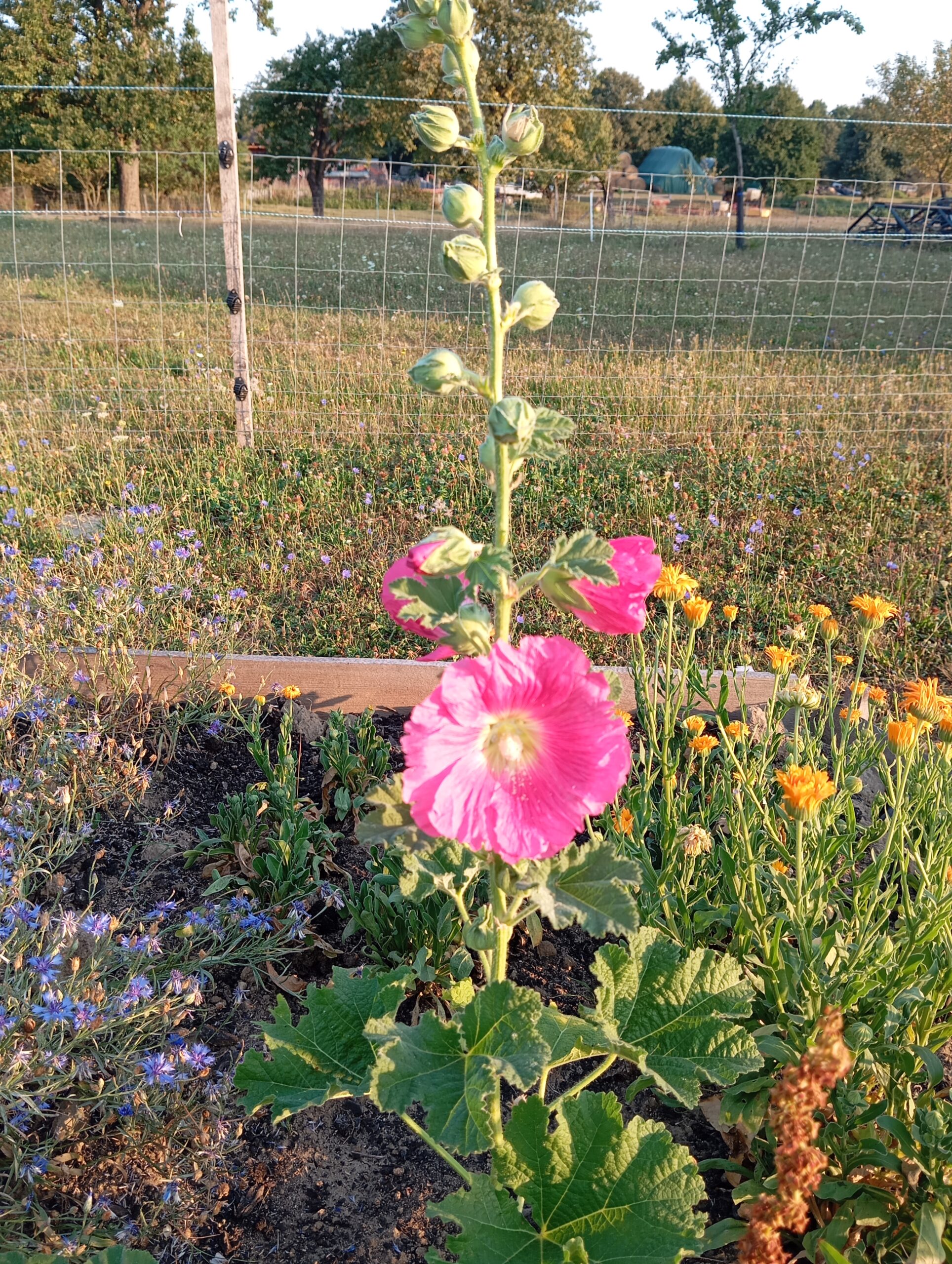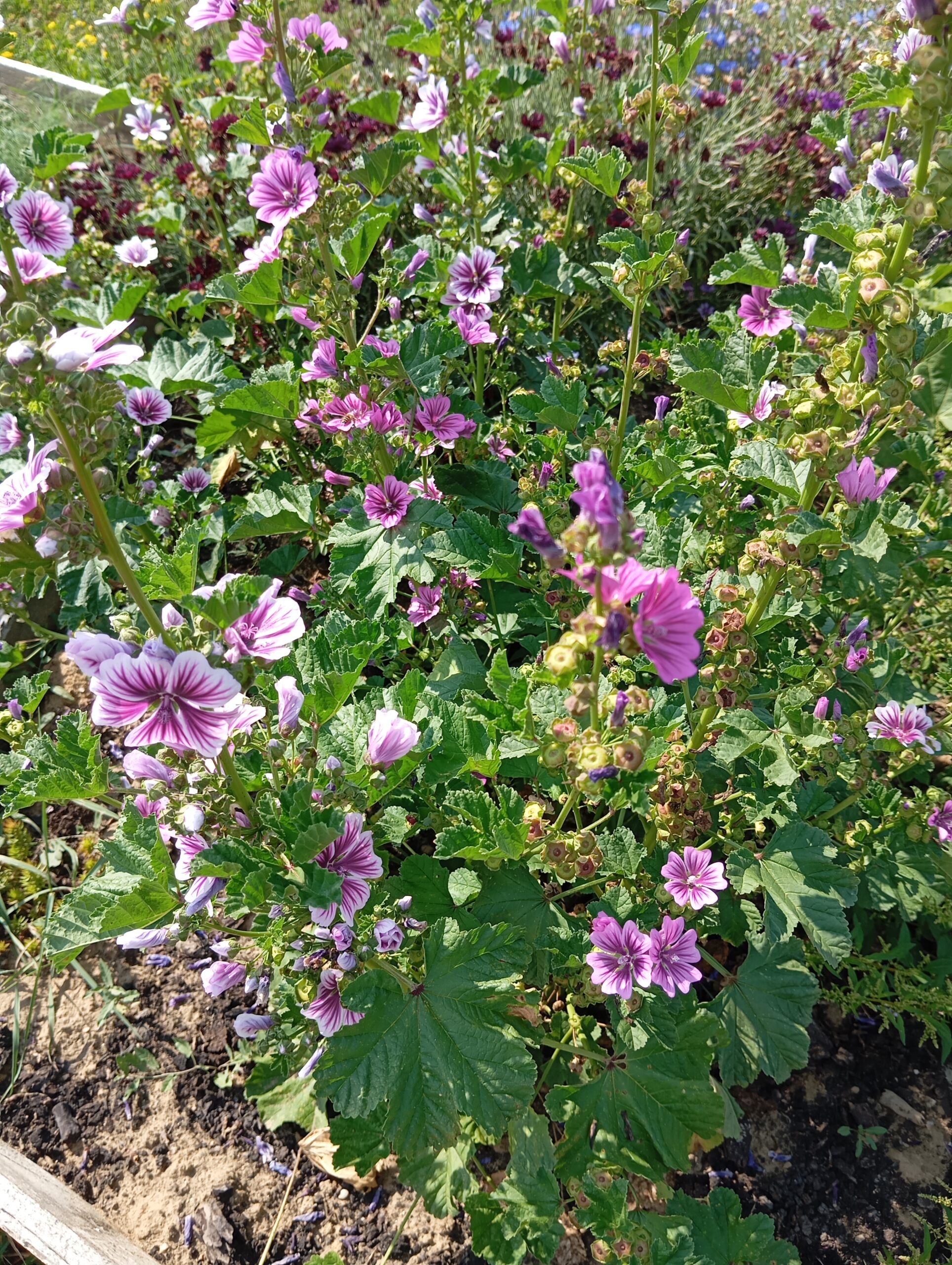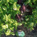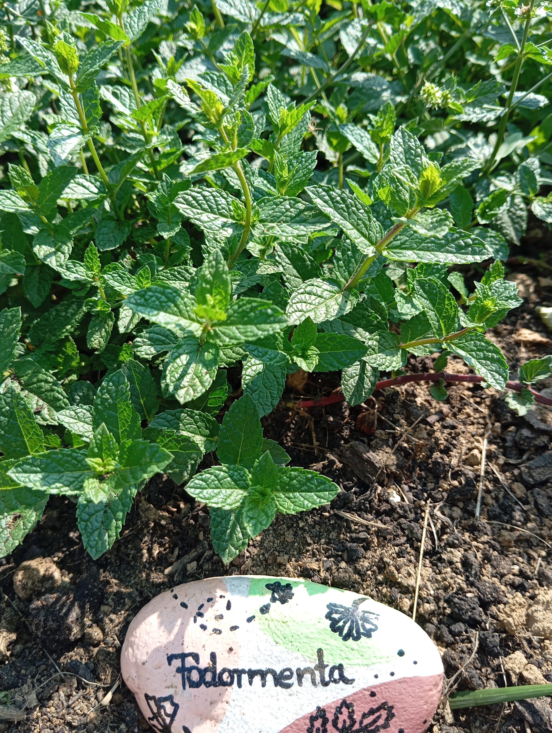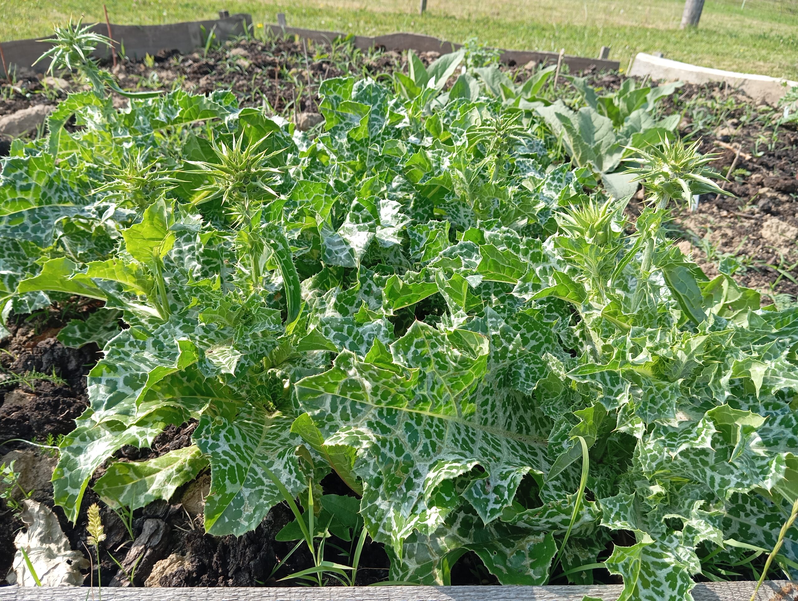 És mi került az ágyásokba? Igyekeztem tematikusan elrendezni a növényeket. Így lett egy menta ágyás, ahol többféle mentával lehet megismerkedni, megillatolni, esetleg megízlelni. Lett egy mediterrán gyógy- és fűszernövényeket felvonultató ágyás, melyben helyet kapott a kakukkfű, a bazsalikom, az orvosi zsálya és a muskotályzsálya, a rozmaring, a koriander, és természetesen az oregánó, vagy szép magyar nevén szurokfű (aki ellátogat hozzánk egy bemutatóra, annak azt is elárulom, miért hívják így). A következő ágyás a hagyományos magyar/erdélyi fűszernövényeket vonultatja fel, úgymint a majoránna, tárkony, lestyán, izsóp, borsikafű, borágó és kömény. Készült egy virág-hasznosítású ágyás is, melyben helyet kapott a hagyományos kék mellett a lila és fekete színű búzavirág, a körömvirág, a sáfrányos szeklice, az erdei mályva és a mályvarózsa is. A levél-hasznosítású növényeket bemutató ágyásban sóska, lósóska, mángold, metélő hagyma és metélő fokhagyma, valamint citromfű található. A vadon termő gyógynövényeknek helyet adó ágyásban dúsvirágú ökörfarkkóró., fehér üröm és egynyári üröm, orvosi pemetefű, máriatövis, apróbojtorján, szúrós gyöngyajak és mirigyes pereszlény díszlik. Mindezeken túl pedig egy egyéb különleges növényeket bemutató ágyás is létesült, ahol chia, chilei epazote, ánizs, gumós kömény és édeskömény, valamint indiai citromfű. látható