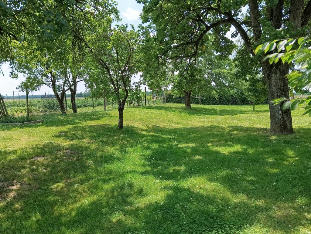 Kertünk, gazdaságunk az Őrség egyik legrégebbi településén, Őrimagyarósdon található. Ez a hangulatos kis település nem programdömpinggel csábít, inkább a természetközeliség, a lelassulás, a csend és nyugalom a fő hívószava. Ezt igyekszünk megőrizni és megmutatni birtokunkon. Nem harsányan, nem látványosan, nem túlzón, és nem agresszíven gazdálkodunk. Próbálunk belesimulni a tájba, felhasználni őseink tudását, hagyományait, biztosítani a körforgást. Ezért nemcsak növényeket termesztünk, de állatokat is tartunk. Birkák, lovak, baromfik biztosítják a szerves tápanyagot a talajnak, hogy minél egészségesebb gyümölcsöket, zöldségeket, gyógy- és fűszernövényeket tudjunk megtermelni. Közben tojást, gyapjút és húst adnak, legelő munkaerőt biztosítanak, és sok kedves pillanatot okoznak a puszta jelenlétükkel. Megnyugtató és felemelő érzés látni, hallgatni, mikor a lovak jóízűen ropogtatják a zabot, vagy épp vágtába kezdenek a réten; a birkák elmélyülten legelik a friss füvet, vagy a kisbárányok játékosan ugra-bugrálnak anyukájuk körül; tavaszi reggeleken madárdal tölti be a kaszálógyümölcsöst; nyári estéken pedig valóságos tücsökzenekar ciripel az udvarban.