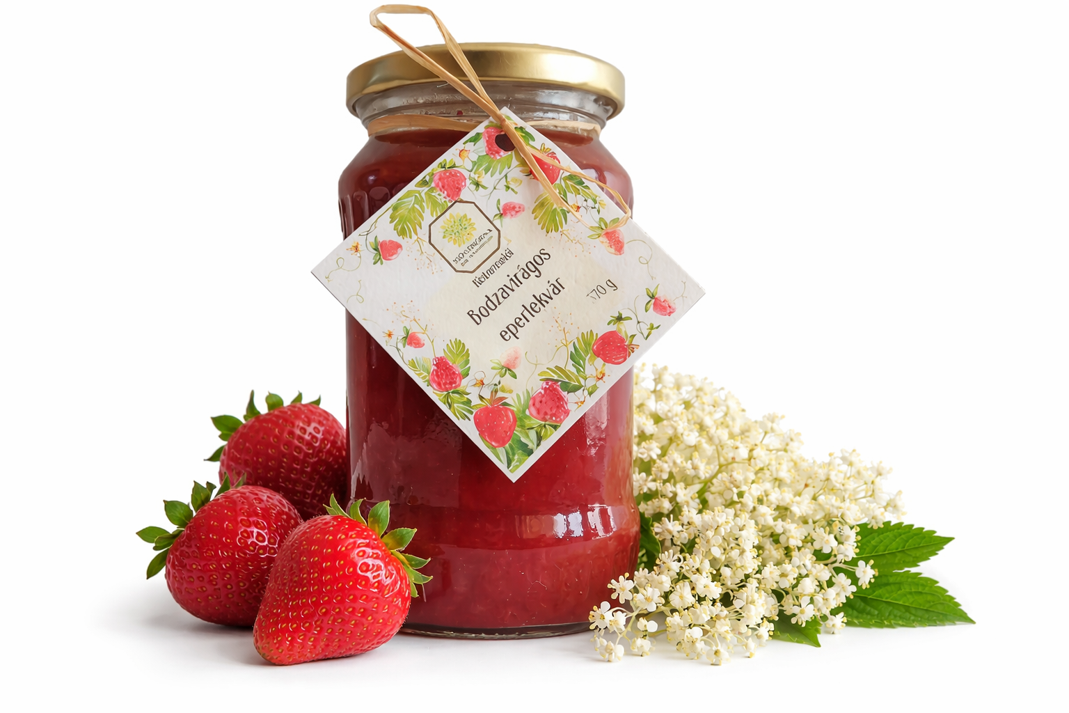 Összetevők: eper (87%), cukor, almapektin, bodzavirág, citromsav